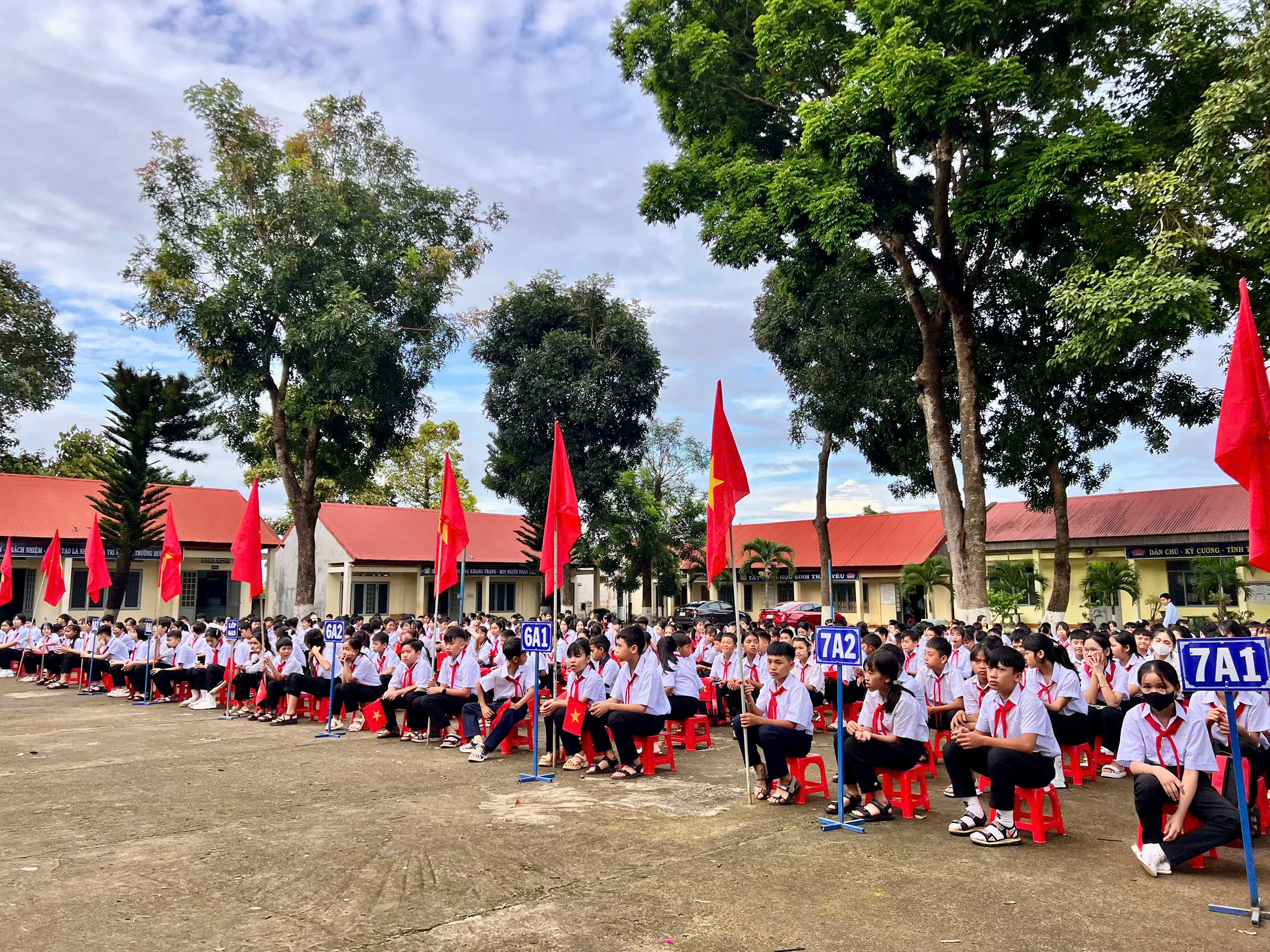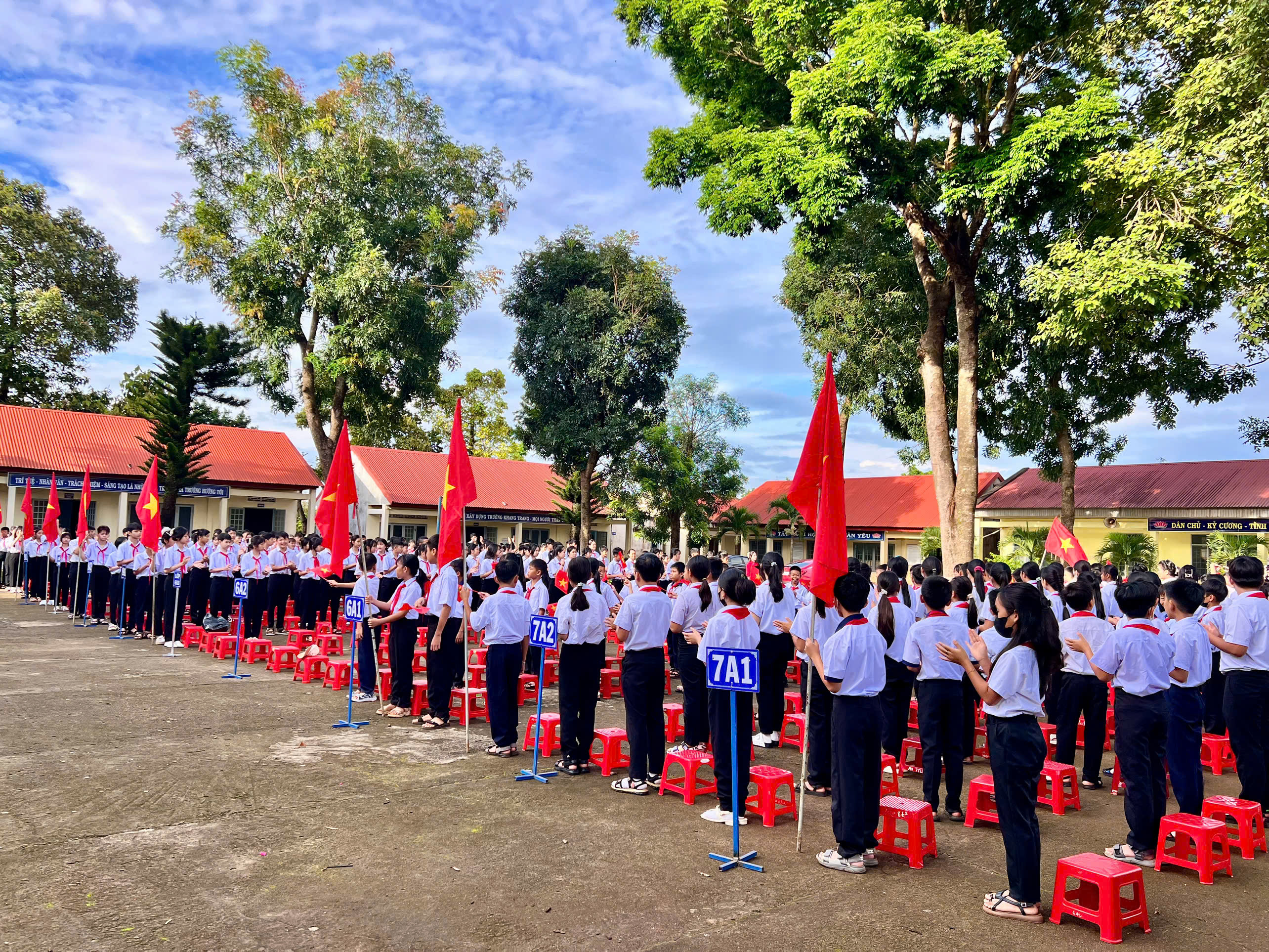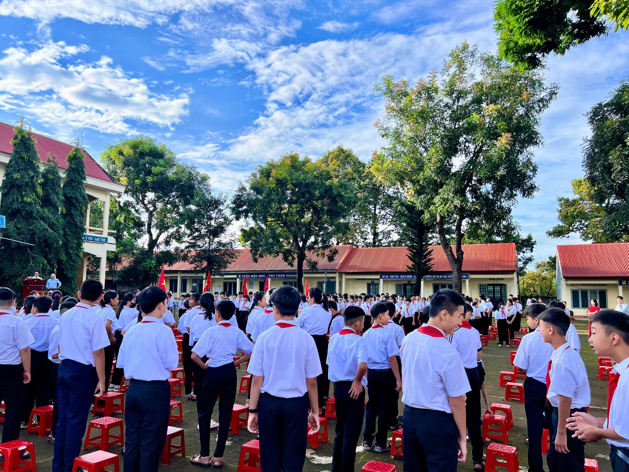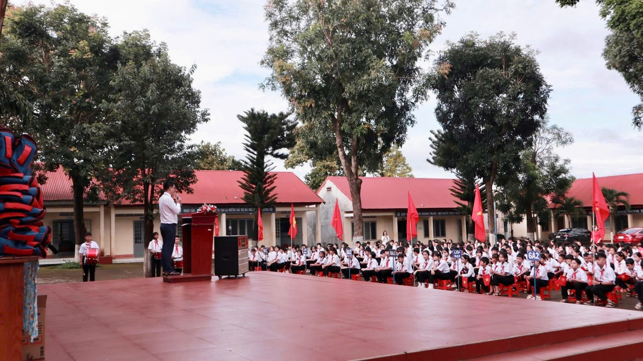 Chương trình Lễ khai giảng được diễn ra từ 7h00 đến 7h45 với sự góp mặt đầy đủ của toàn thể cán bộ, viên chức, người lao động và học sinh. Mở đầu buổi lễ là phần chào đón những tân học sinh khối 6 bước vào ngôi trường mới, tiếp đó nhà trường cùng nhà tài trợ đã trao 50 suất quà hỗ trợ cho các em học sinh có hoàn cảnh khó khăn. Tại buổi lễ đồng chí Trần Đình Hương – Bí thư Chi bộ, Hiệu trưởng nhà trường và Đồng chí Nguyễn Xuân Diện – Bí thư Đảng bộ xã Ea Tul đã có bài phát biểu chia sẻ với toàn thể nhà trường góp phần tạo nên sự gắn kết giữa nhà trường và địa phương.