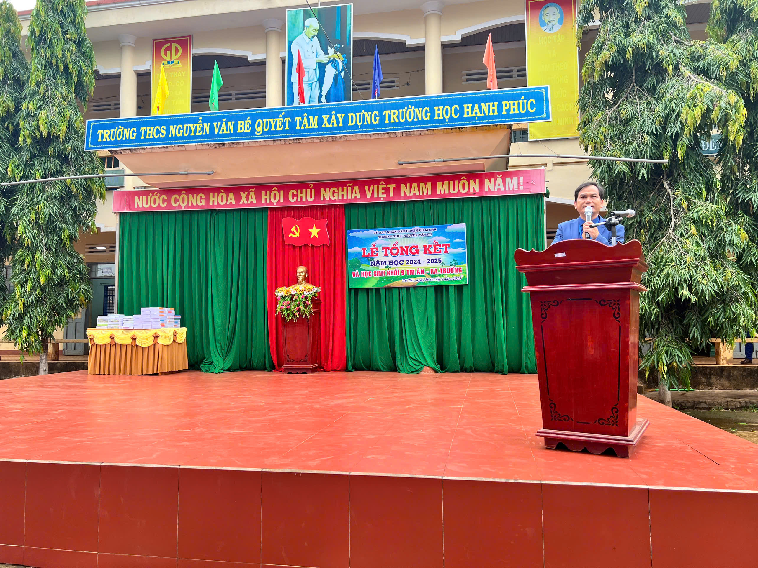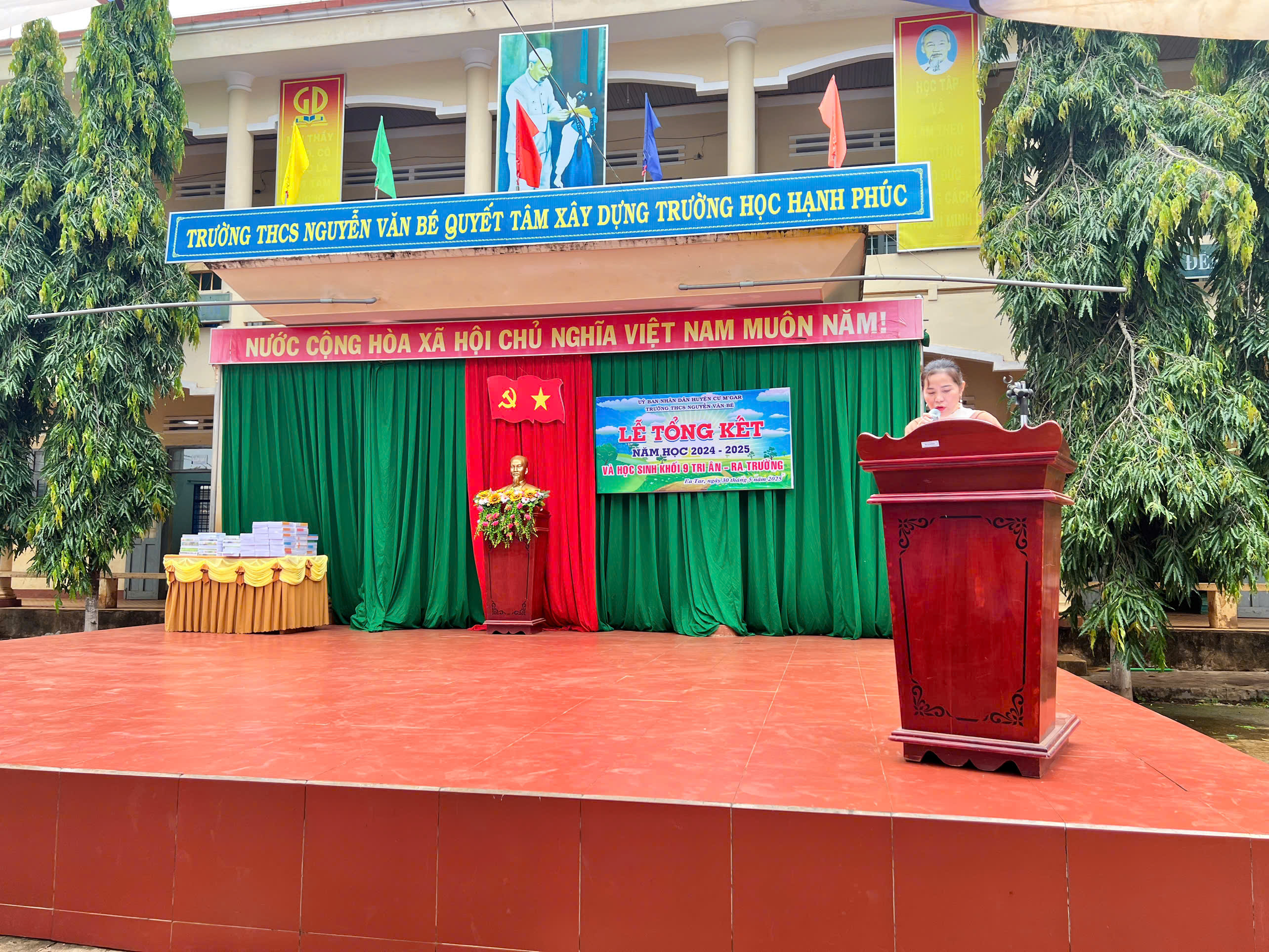 Ngày 30 tháng 5 năm 2025, Trường THCS Nguyễn Văn Bé đã tổ chức Lễ tổng kết năm học 2024 – 2025, đánh dấu kết thúc một chặng đường trong hành trình giáo dục của nhà trường. Buổi lễ diễn ra tại khuôn viên trường với sự tham gia đầy đủ của cán bộ, giáo viên, nhân viên và đông đảo học sinh cùng phụ huynh.